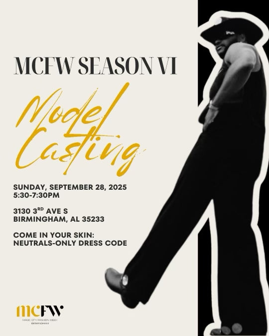 Magic City Fashion Week is a creativity, inclusivity, sustainability, and education-centered 501(c)3 highlighting and providing economic opportunity to a vibrant Birmingham fashion culture that extends far beyond a historical footnote.